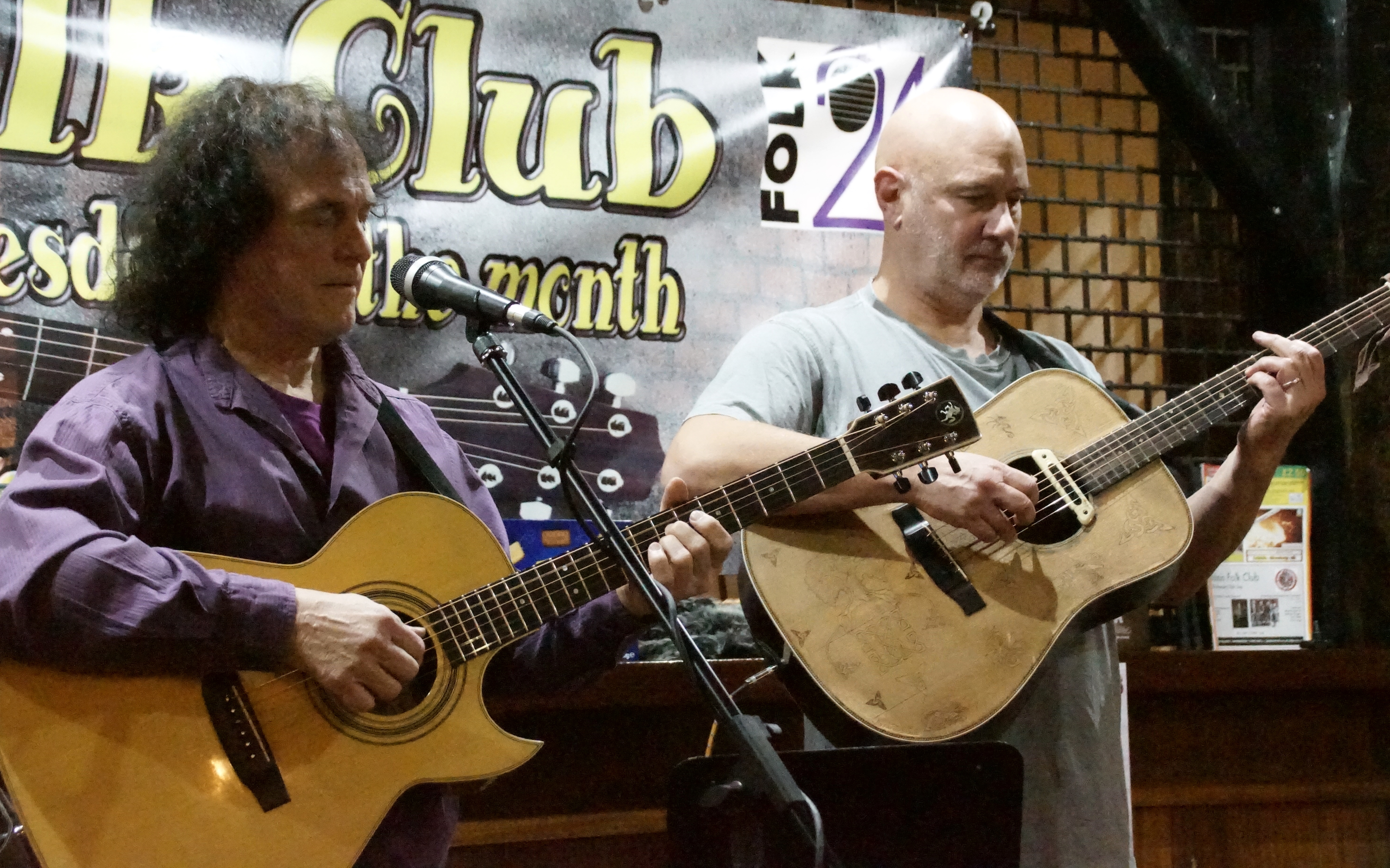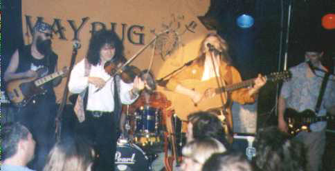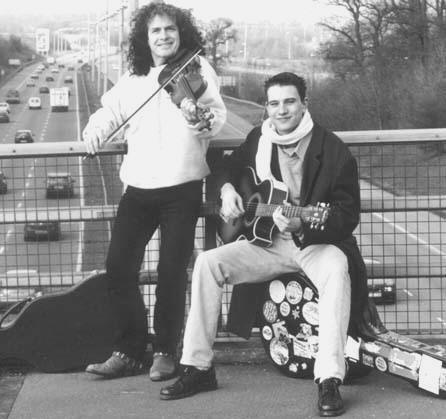 name to MAYBUG, and recorded a new CD "GOLFSTREAM" in Germany. Martyn and Walter peformed in Massachusetts, USA for one week in May 2000, but after a partnership spanning nearly 20 years, ORAM & DIET / MAYBUG finally came to an end in October 2001, with Walter deciding to concentrate on his own music - check out www.maybug.de Meanwhile, back at the ranch, LUKE ‘N’ FLOYD had appeared on “SKY TV” (Lyndsey De Paul: “nice looking fellas !”); at the 1991 Worthing Country Music Festival (“a truly remarkable performance of pure talent” British Country Music Roots Oct. 1991) and recorded their first album, “WOODLOUSE” in London in '93 (“multi-talented duo who don’t so much specialise as excel in a variety of country styles…an impressive collection of stylish and memorable self compositions and ace picking and fiddle playing and other acoustic delivery. Definitely worth the price of admission.” Rock ‘n’ Reel Autumn ’93). Continued solo gigging throughout Britain, included Edward Heath's 80th Birthday Party, and on a train carrying the cast of Brookside to their 500th episode party!